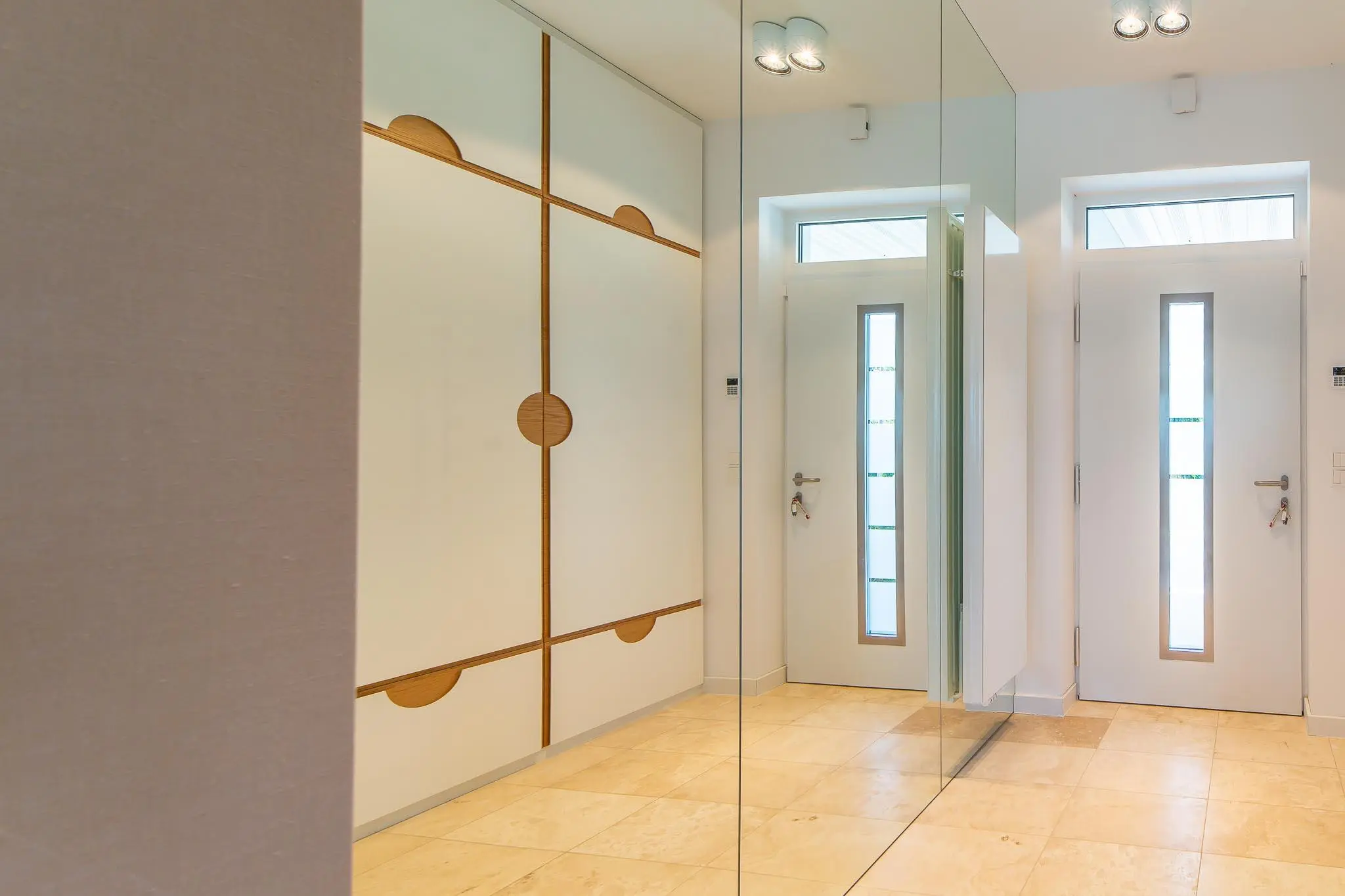 - przedpokój z lustrzaną szafą w zabudowie