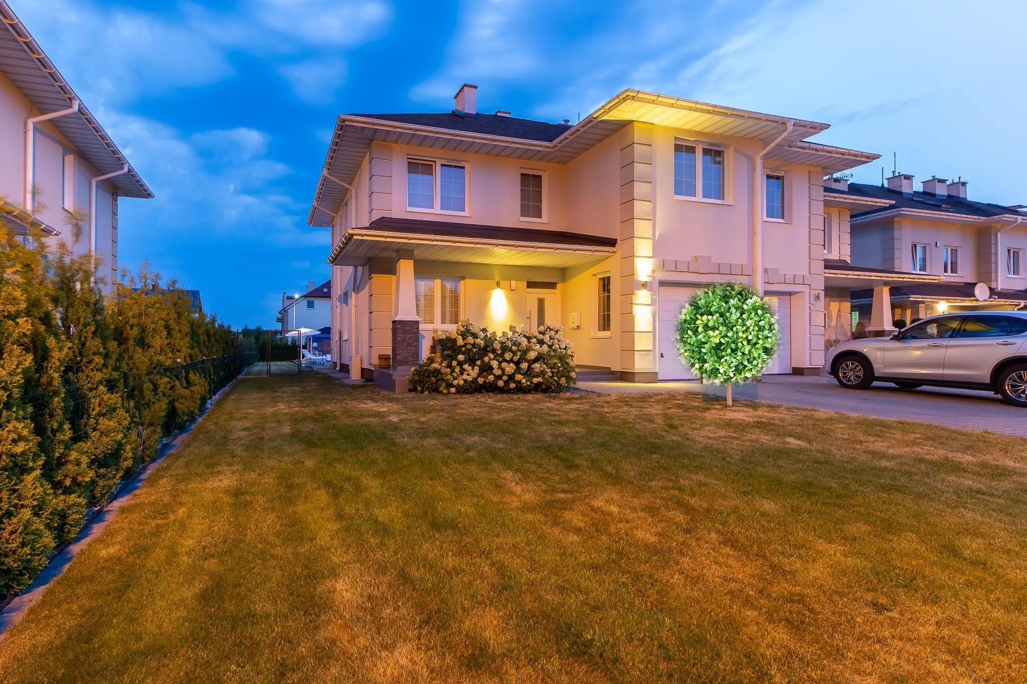 przepięknie zaprojektowany z dbałością o optymalne wykorzystanie powierzchni. Cały teren jest ogrodzony i monitorowany 24 h (ochrona).