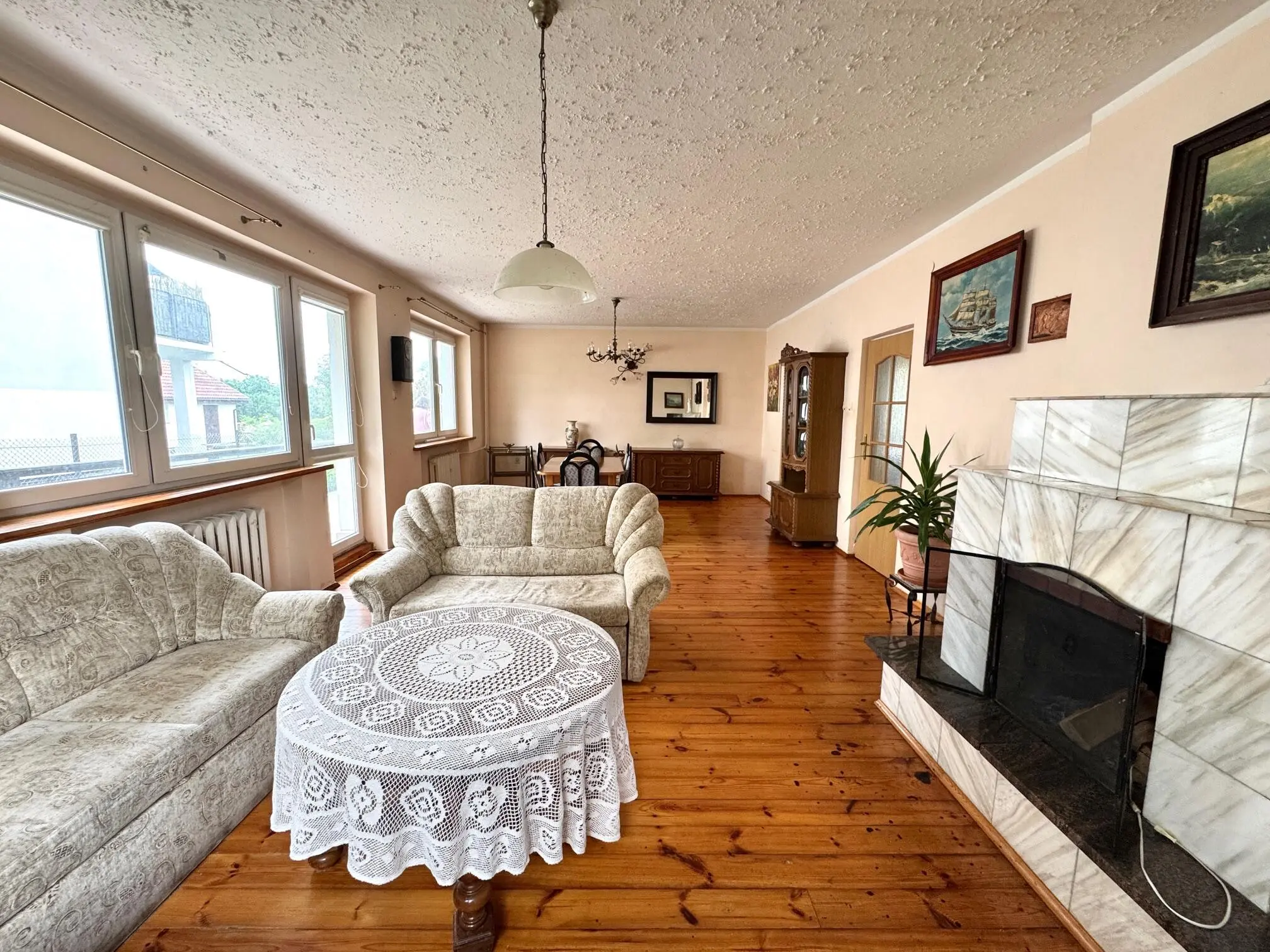 - salon dzienny z kominkiem, jadalnią z wyjściem na taras i ogród 39,70 m2
