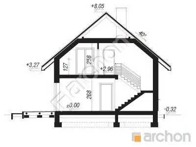 Wolnostojący budynek mieszkalny jednorodzinny niepodpiwniczony, parterowy z poddaszem użytkowym. Budynek nakryty dachem dwuspadowym o kącie 40 stopni.
